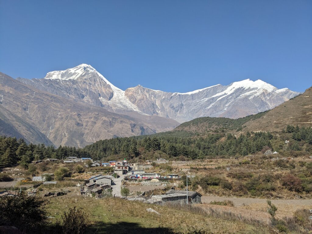The trek also includes visits to sacred places like Muktinath, a revered pilgrimage site for both Hindus and Buddhists. The scenic beauty along the trek includes views of iconic peaks such as Manaslu (8,163m), Annapurna II (7,937m), Dhaulagiri (8,167m), and Tilicho Peak (7,134m), offering some of the most dramatic and diverse mountain views in Nepal.